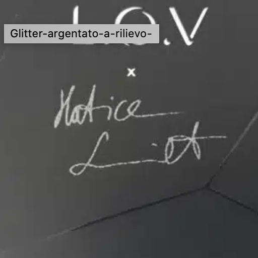 Su cartone nero, plastificato, con uv serigrafico. Glitter argentato a rilievo.